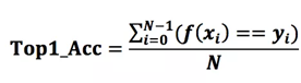 记样本xi的类别为yi,类别种类为(0,1,…,C),预测类别函数为f,则Top-1的计算方法如下:
