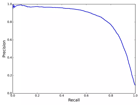 通常召回率越高,精确度越低,根据不同的值可以绘制Recall-Precision曲线,如下图: