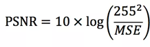 PSNR越大表示失真越小,均方误差的计算如下: