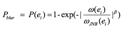 在给定一个对比度高于JND (Just Noticeable Difference)参考的情况下,定义JNB (Just-noticeable-blue)指标为感知到的模糊像素的最小数目,边缘处像素的模糊概率定义如下: