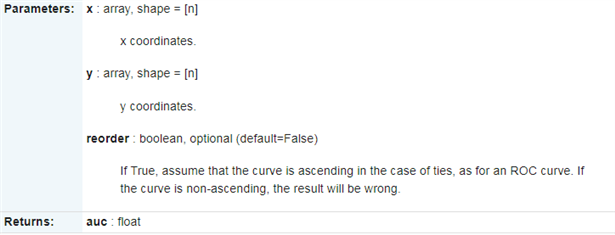 当然,业界已经有不少工具提供了计算AUC的便捷API了,例如下面是scikit-learn库中与AUC计算相关的一个接口原型: