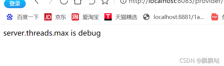 }其中,@RefreshScope的作用是在配置中心的相关配置发生变化以后,能够及时看到更新(底层是通过重新创建Controller对象的方式,对属性进行了重新初始化),Controller编写好以后,启动配置中心服务,然后进行访问测试。,打开浏览器直接在地址栏输入http://localhost:8081/provider/doGetLogLevel,检测输出结果是否为我们配置中配置的信息,如图所示。