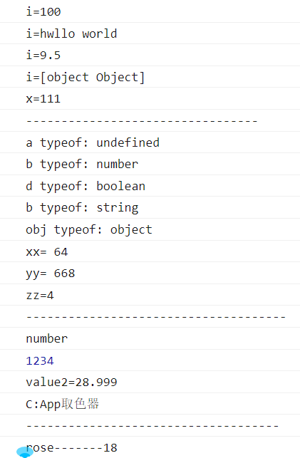 console.log("x="+x);//有值便可使用即使不声明,无值也行但运算不行