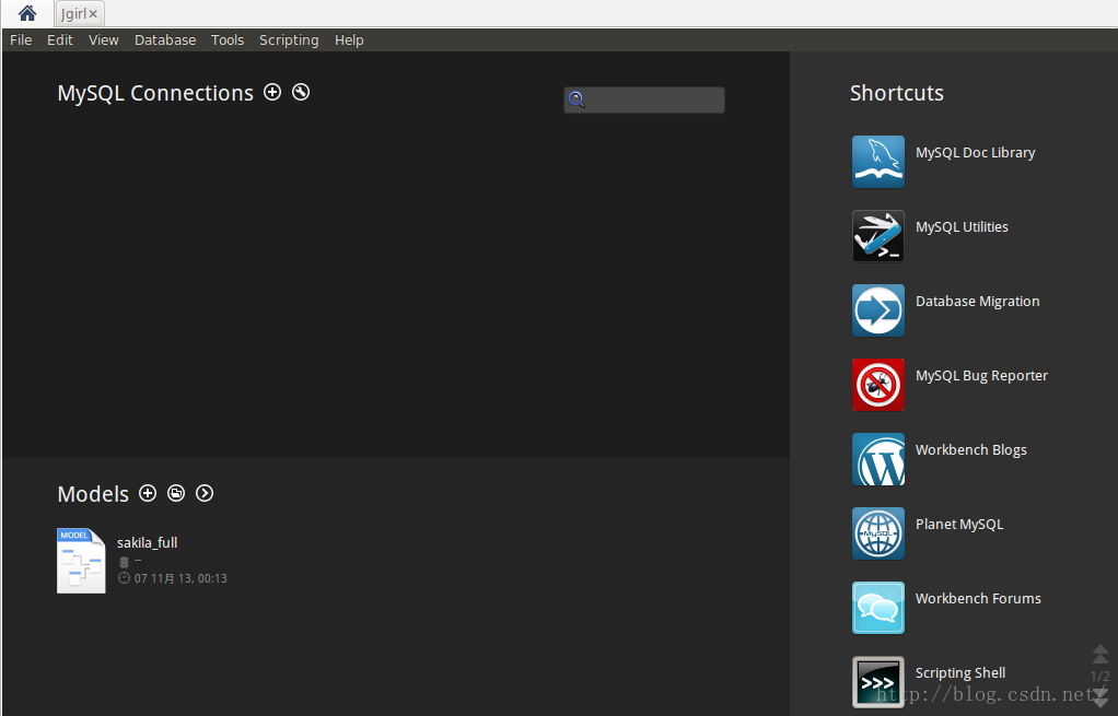 MySQL-workbench首页如下图: