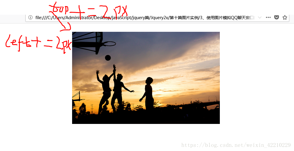 //定义图片盒子div左上角top和left的+=2px;实现视觉上的抖动