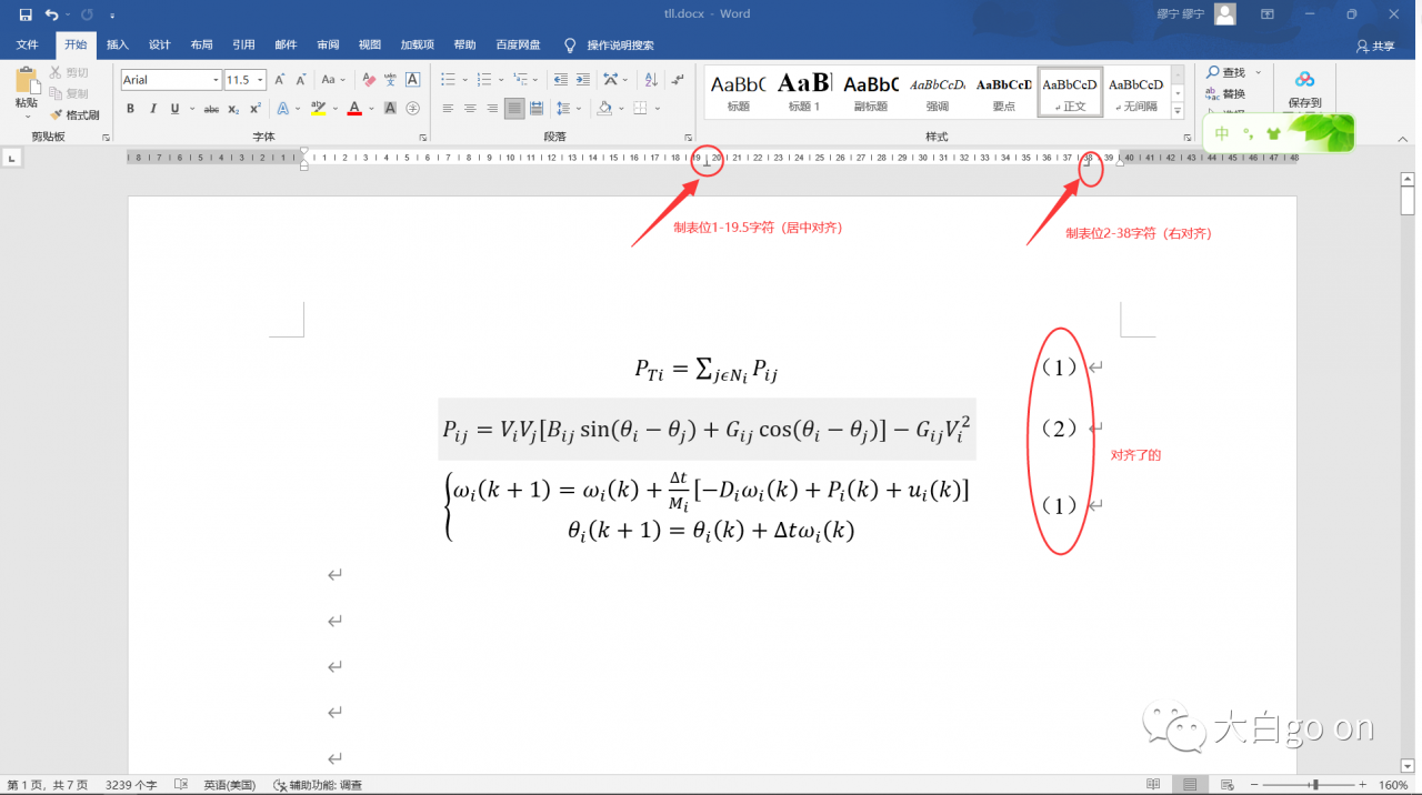 写论文过程中,会遇到对公式进行标号——(1)、(2)、(3)......要求公式需要居中,标号要对齐,这个时候利用空格键通常是不能满足要求的。所以就需要利用制表位嘞。