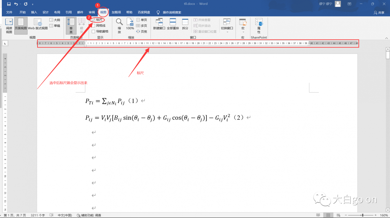 首先,需要利用word中的标尺,这样方便把握排版的位置。打开方式如下图——