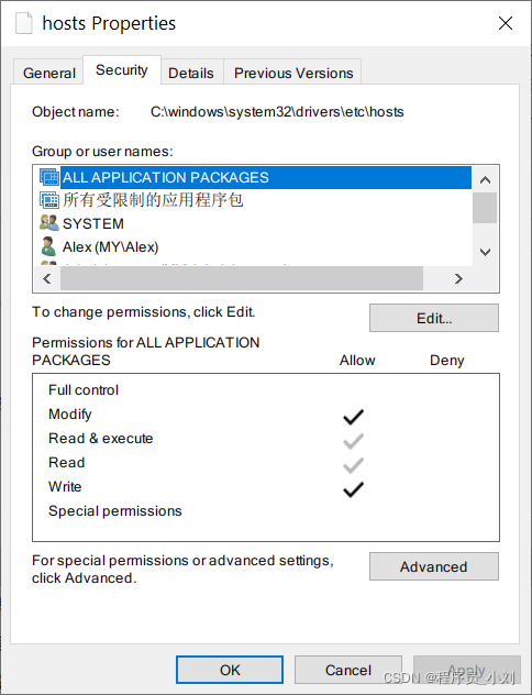 185.199.111.133 raw.githubusercontent.com4. 可能会遇到没有权限修改hosts,右键hosts文件增加权限