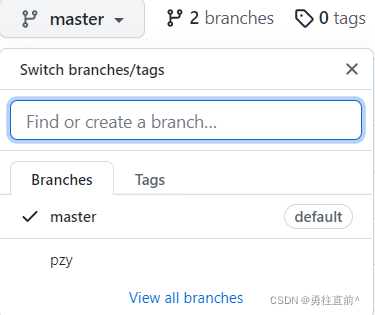 上面的两个分支,如果你修改的是本地的个人仓库pzy,想通过master合并分支的话,按照下面的命令操作: