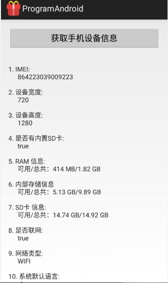 获取手机IMEI、宽、高、是否有SD卡,RAM、ROM、SD卡、是否联网、网络类型
