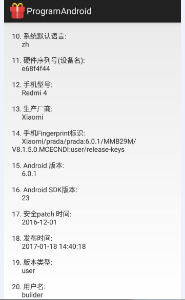 那么如何获取这些设备信息呢? Android中 通常通过 android.os.Build类方法可以获取更多手机设备信息。