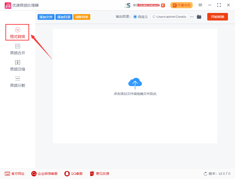 步骤1,在电脑上下载“优速音频处理器”软件工具,安装之后打开使用。点击左边列表最上面的【格式转换】功能,这里支持二十多种音乐格式转换成mp3,包含flac格式。
