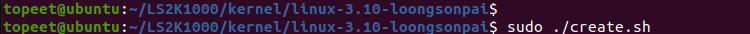 在内核源码下,我们输入“sudo ./create.sh”命令,开始编译 Linux 内核,如下图所示: