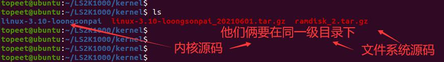 准 备 好 ramdisk 文 件 系 统 源 码 以 后 , 我 们 记 住 他 的 路 径 , 作 者 这 里 的 路 径 为/home/topeet/LS2K1000/kernel/ramdisk_2,后面我们要用到这个路径。
