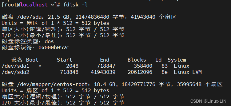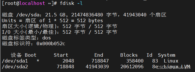 注意:上图中/dev/sda1 后面有个*,表示该磁盘用于引导系统进行启动。
