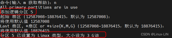 ;总结一下,就是不论磁盘有几个主分区,第一个逻辑分区一定是从sda5开始。