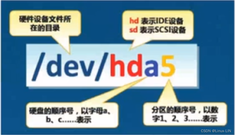 4.硬盘分区表示(Linux中将硬盘等设备均表示为文件)