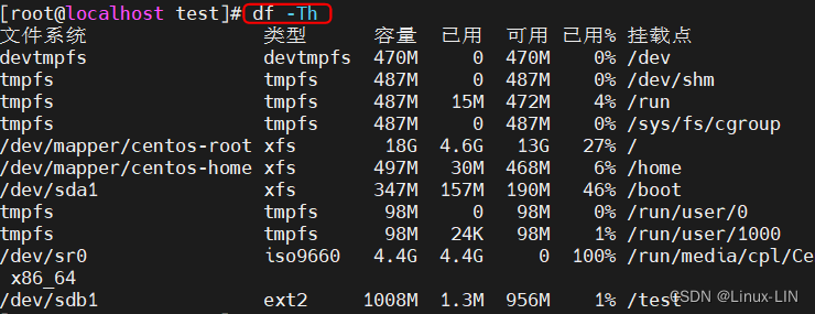 df -Th -----lsblk-f-------也可以查看分区格式化文件类型