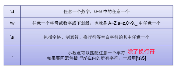 标准字符集合, 除了小数点外,如果被包含于中括号,自定义字符集合将包含该集合