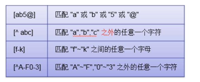[ ] 方括号匹配方式,能够匹配方括号中的任意一个字符