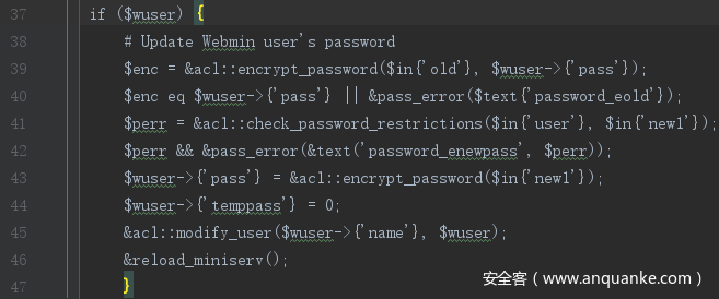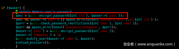在if ($wuser)分支中,首先执行encrypt_password方法,如下图红框处