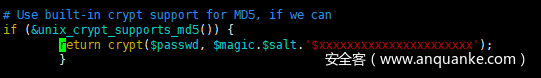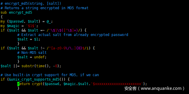 该方法的底层,调用了crypt方法,如下图,位于acl/md5-lib.pl中