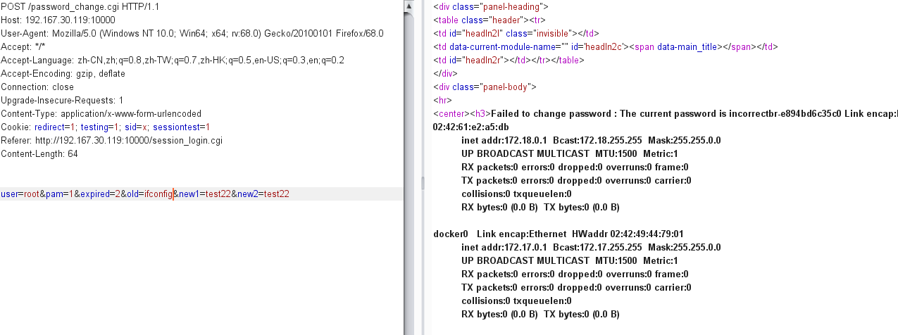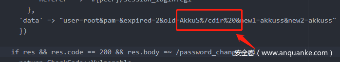 值得注意的是,POST中的old参数,是用户修改密码时所提交的旧密码。众所周知,密码是一个字符串,而非可执行代码,这里将传入的旧密码字符串拿来执行,并非正常业务逻辑所为。