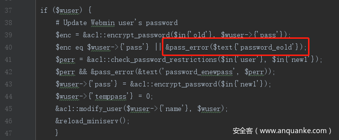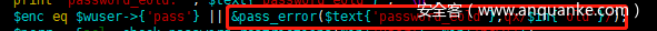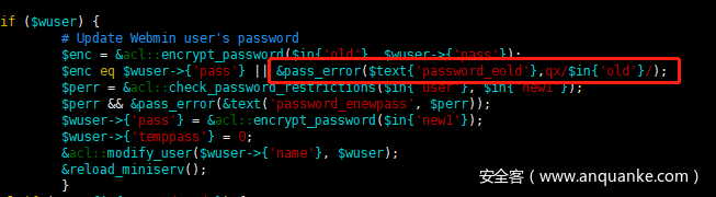 但是注意上图红框处,在pass_error方法的传参中,$in{’old’}被 qx/ /包裹