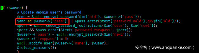 由于我们传入的pass(AkkuS|dir)并不是root用户的密码,下图红框处的eq结果为false
