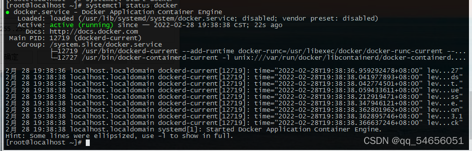9.查看服务状态是否启动,如下图就说明启动成功了:systemctl status docker
