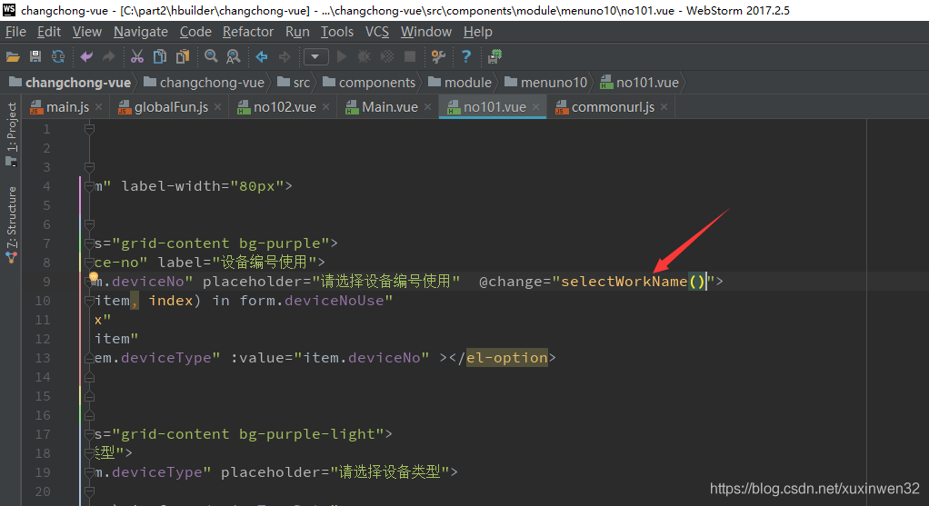 在列表过滤搜索中需要选择下拉框相应的value,使用的@change方法,但是获取到的value值始终为undefind,在网上也找了相关的方法,并没有写错,后来仔细排查发现我写的 @change="selectWorkName()"带了小括号,所以不识别