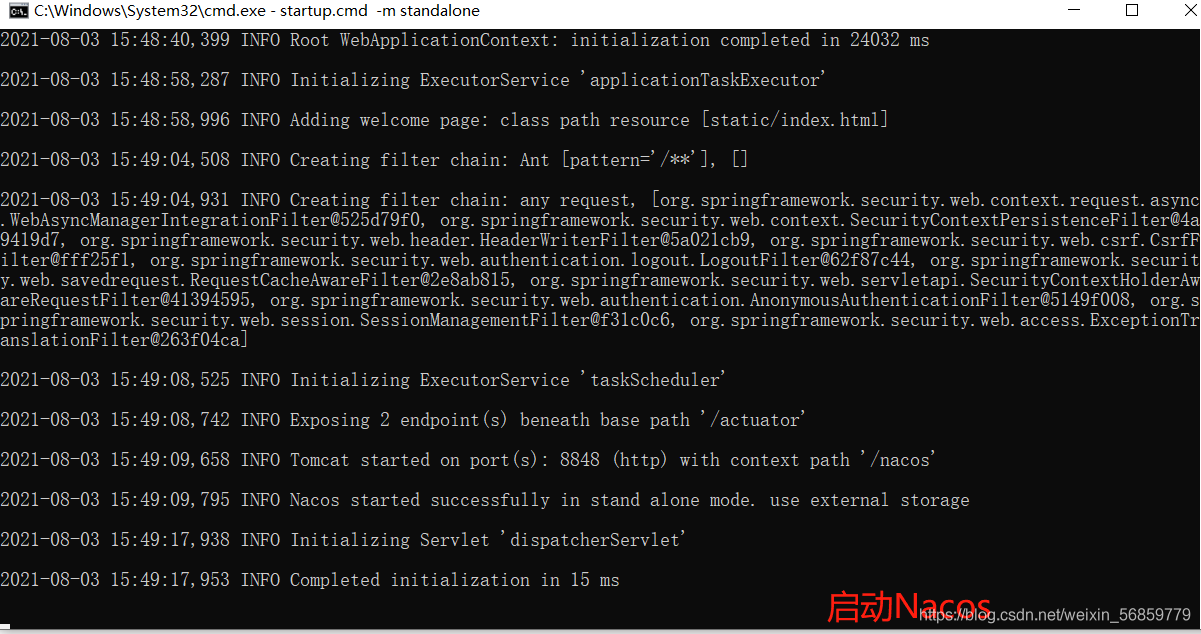 Windows系统下启动Nacos:startup.cmd -m standalone