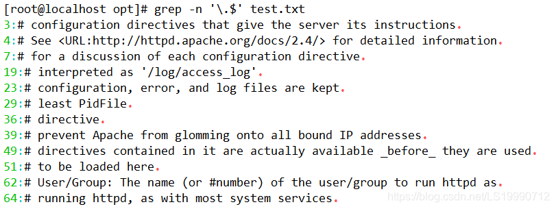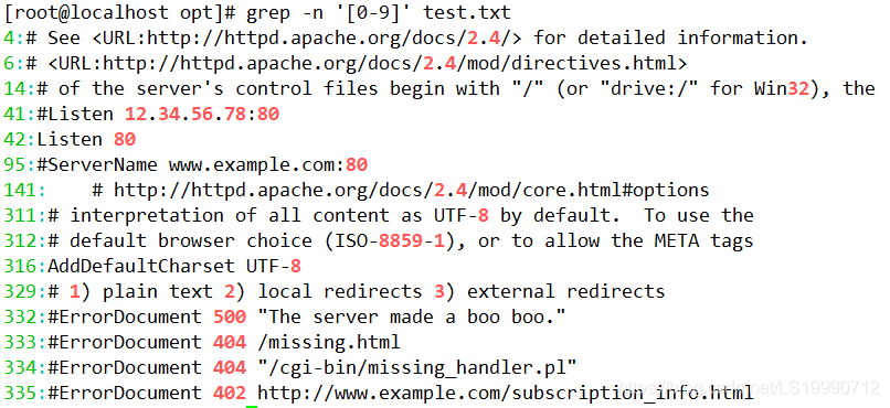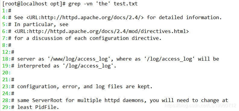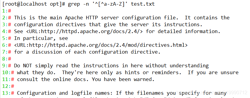 [root@localhost ~]# cp /etc/httpd/conf/httpd.conf /opt/test.txt