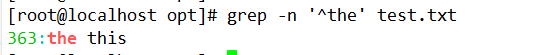 (2)若反向选择,如查找不包含“the”字符的行,则需要通过 grep 命令的“-vn”选项实现。