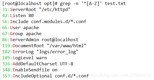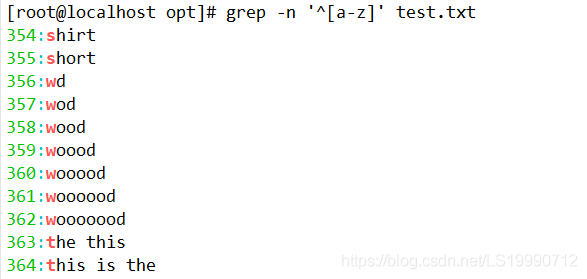 (2)查询以小写字母开头的行可以通过“^[a-z]”规则来过滤,查询大写字母开头的行则使用“^[A-Z]”规则,若查询不以字母开头的行则使用“^[^a-zA-Z]”规则。