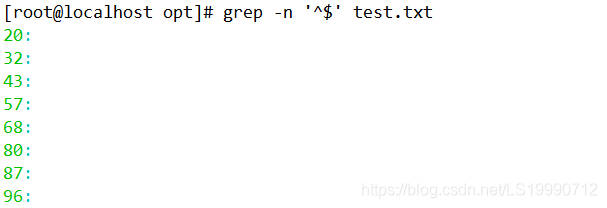 (4)当查询空白行时,执行“grep –n‘^$’test.txt”命令即可。