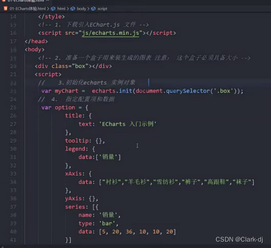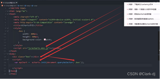 <div id="main" style="width: 600px;height:400px;"></div>初始化echarts实例对象(通过id或者类获取DOM容器)