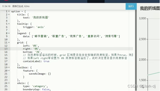 boundaryGap: 坐标轴两边留白策略 true,这时候刻度只是作为分隔线,标签和数据点都会在两个刻度之间的带(band)中间。