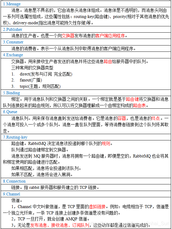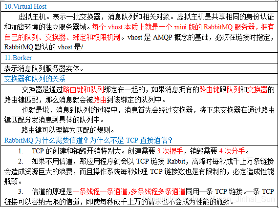 一个Rabbit的实体就称之为Broker,那么我们通过表格里的内容,以及对RabbitMQ关键的组件的介绍,重点是哪儿呢,