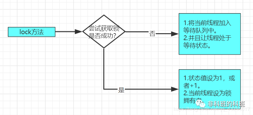 判断当前拥有锁的线程的状态是否为0,为0,执行状态值+1,并将当前线程设置为锁拥有者。