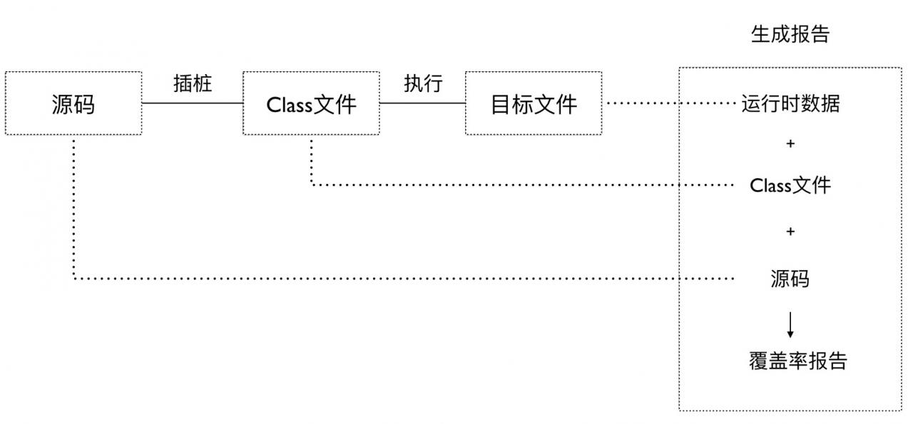 - Offline:在生成最终的目标文件之前,对Class文件进行插桩,生成最终的目标文件,执行目标文件以后得到覆盖执行结果,最终生成覆盖率报告。