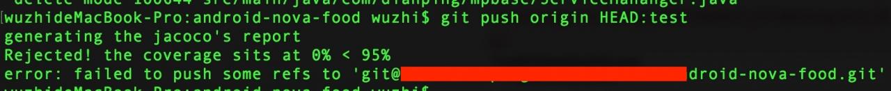为了开发者在提交代码之前能够自动生成覆盖率报告,我们在插件apply阶段动态下发一个Pre-Push脚本到本地项目的.git目录。在push之前生成覆盖率报告,同时对于覆盖率小于一定值(默认95%,可自定义)的提交提示并报警: