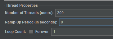 - Ramp-Up的值默认为0,代表立即建立所有线程,即同时并发。
