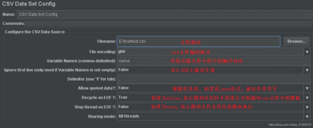 4、Jmeter提供CSV Data Set Config作为参数获取的一种方式