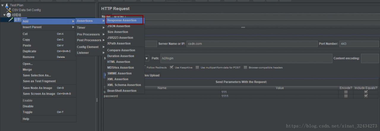 在“http请求”打开鼠标右键-->添加-->Assertions-->response Assertion