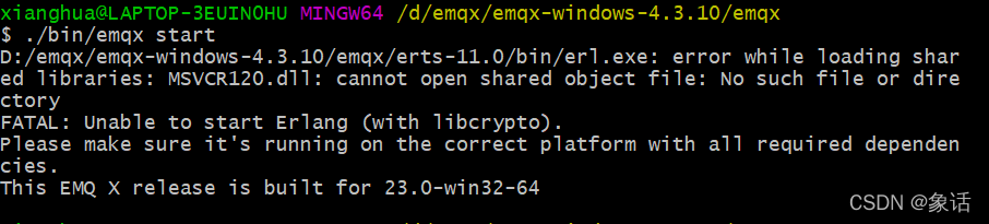 开始使用 的是git-bash命令行执行 ./bin/emqx start报错如下:
