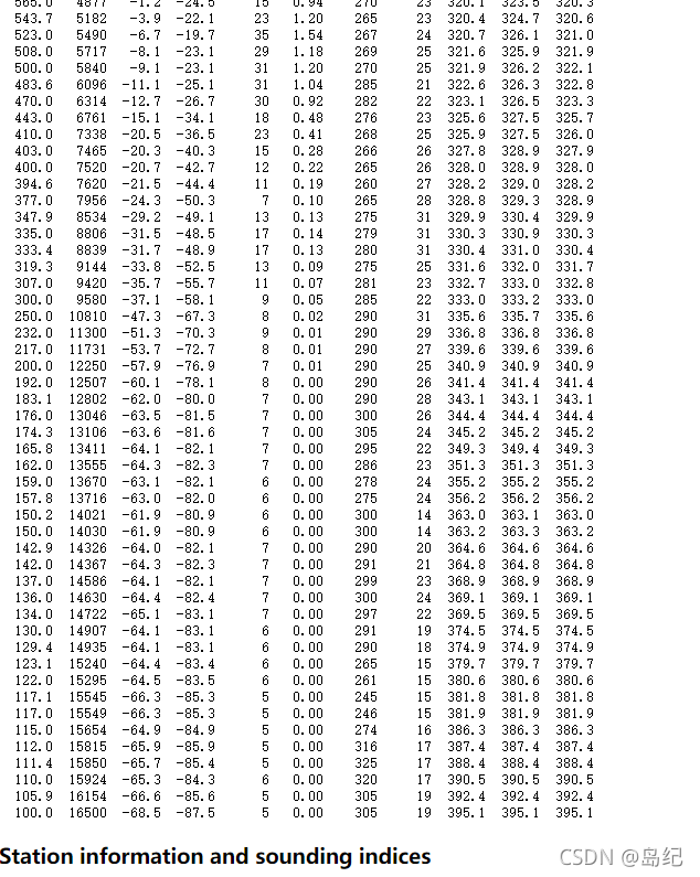 用MATLAB在俄怀明大学上爬取探空资料,设置爬取时间区间,以及站号进行下载。如果只需要Station上面的数据,则不需要进行修改。