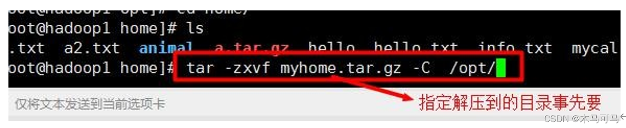 tar -zxvf myhome.tar.gz -C /opt/ 指定解压到的目录事先要存在才能成功,否则会报错