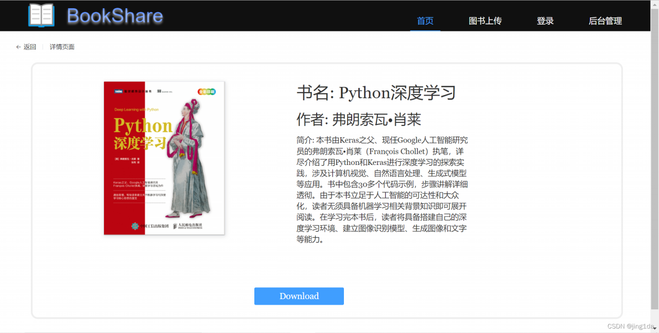 图书详情页中的Download点击后会在网页中的下载里弹出并自动下载