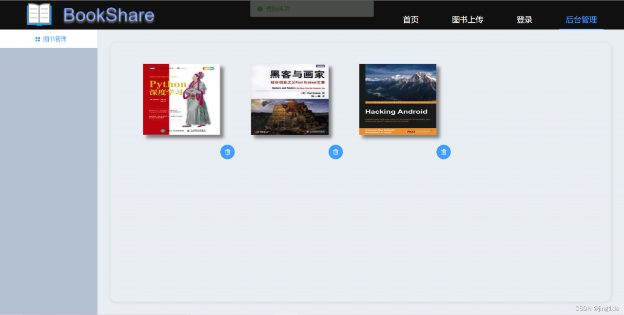 后台管理仅限管理员登录 设置了全局前置路由守卫 控制权限进入(登录后才能进行图书的删除操作)